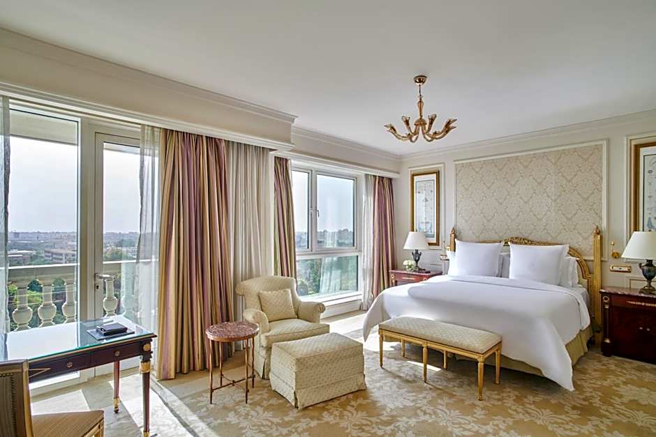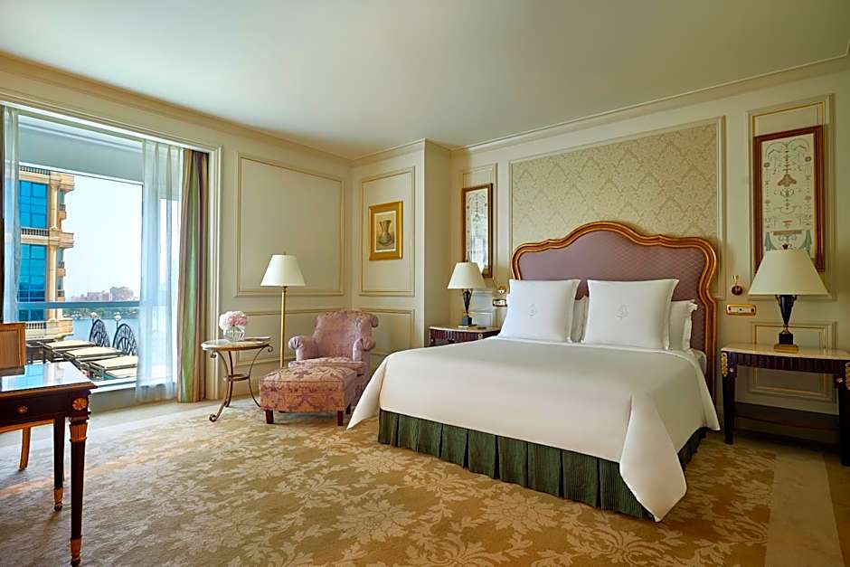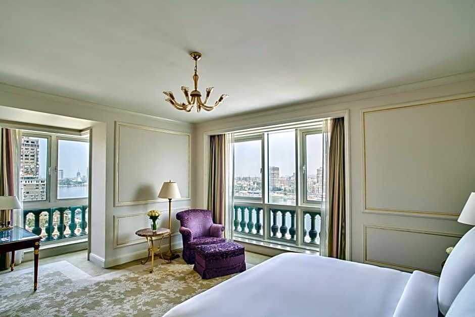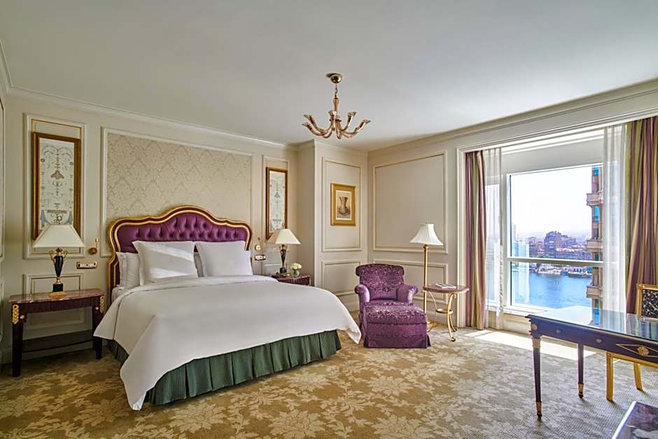 This room offers impressive views of Nile and swimming pool. It features a flat-screen TV, a DVD, a BOSE radio and a mini-bar. The living room includes plush arm chairs, a desk and high speed internet. The bathroom is fitted with a tub, a glass shower.